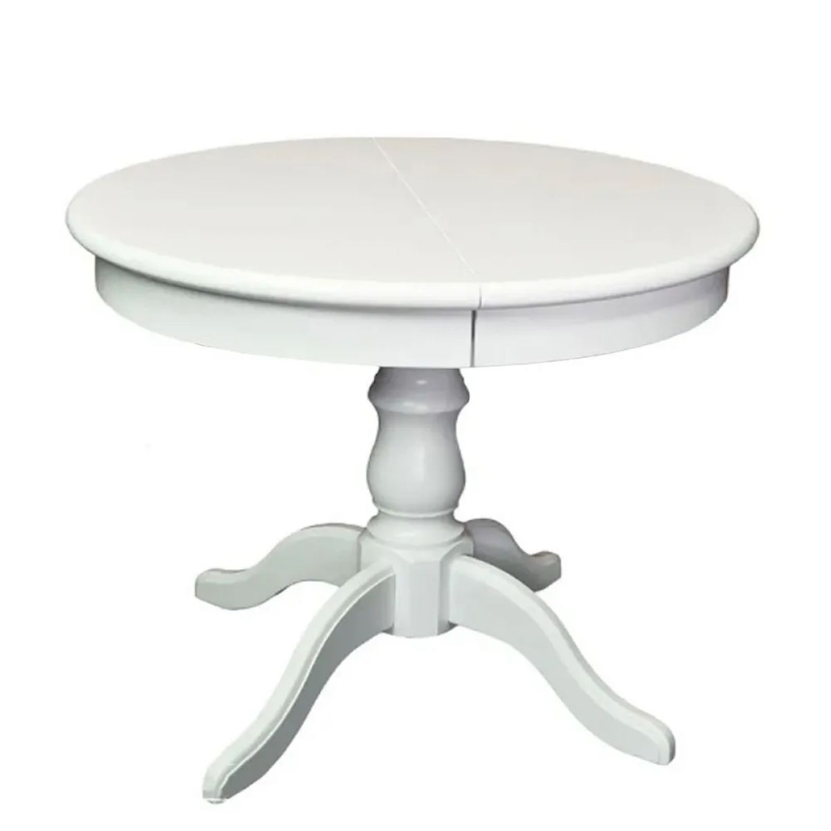 Стол Оливия Круглый, Ø100см. + вставка 30см., столешница МДФ, ножка береза, Цвет: Белый. Скидка 30%