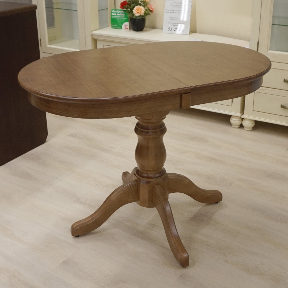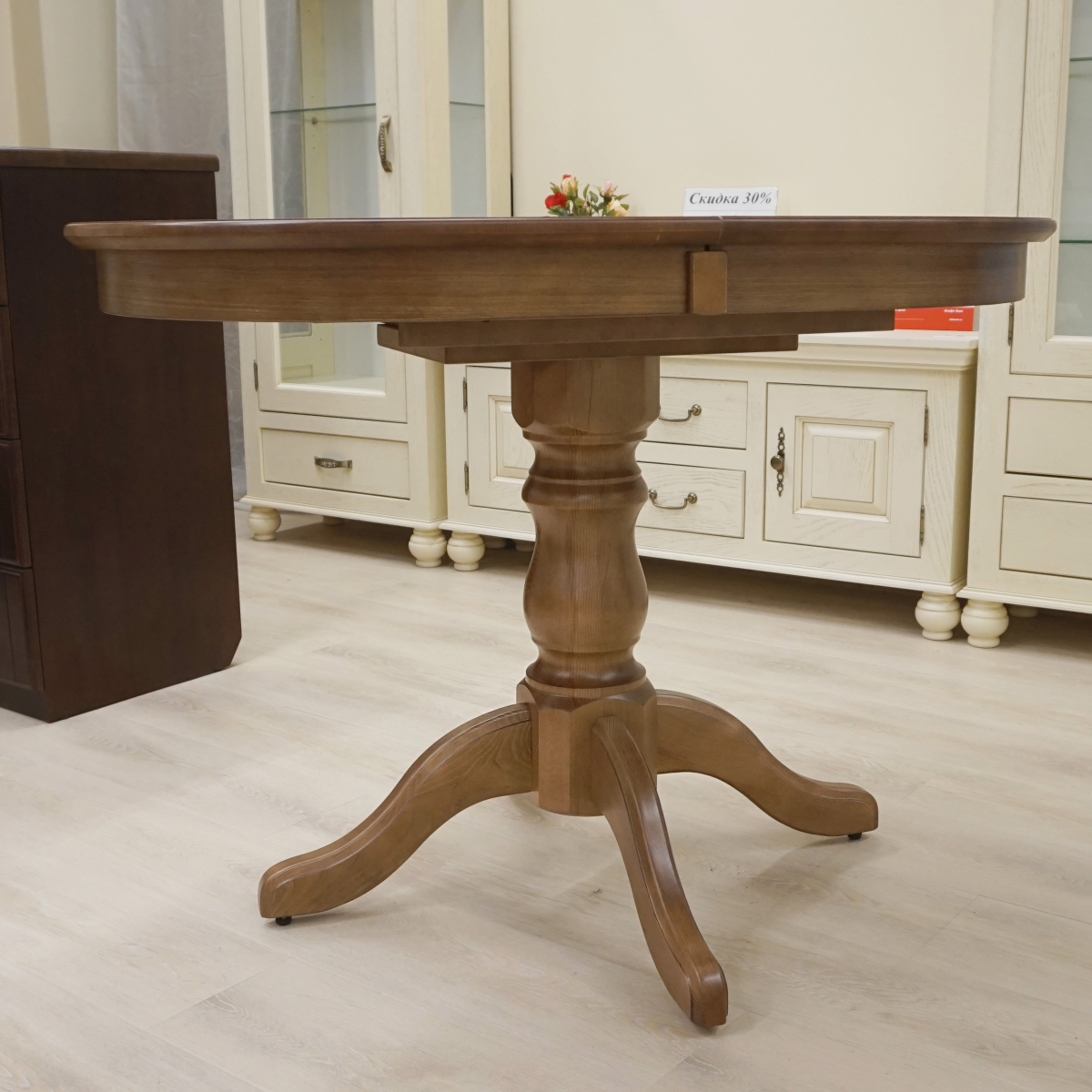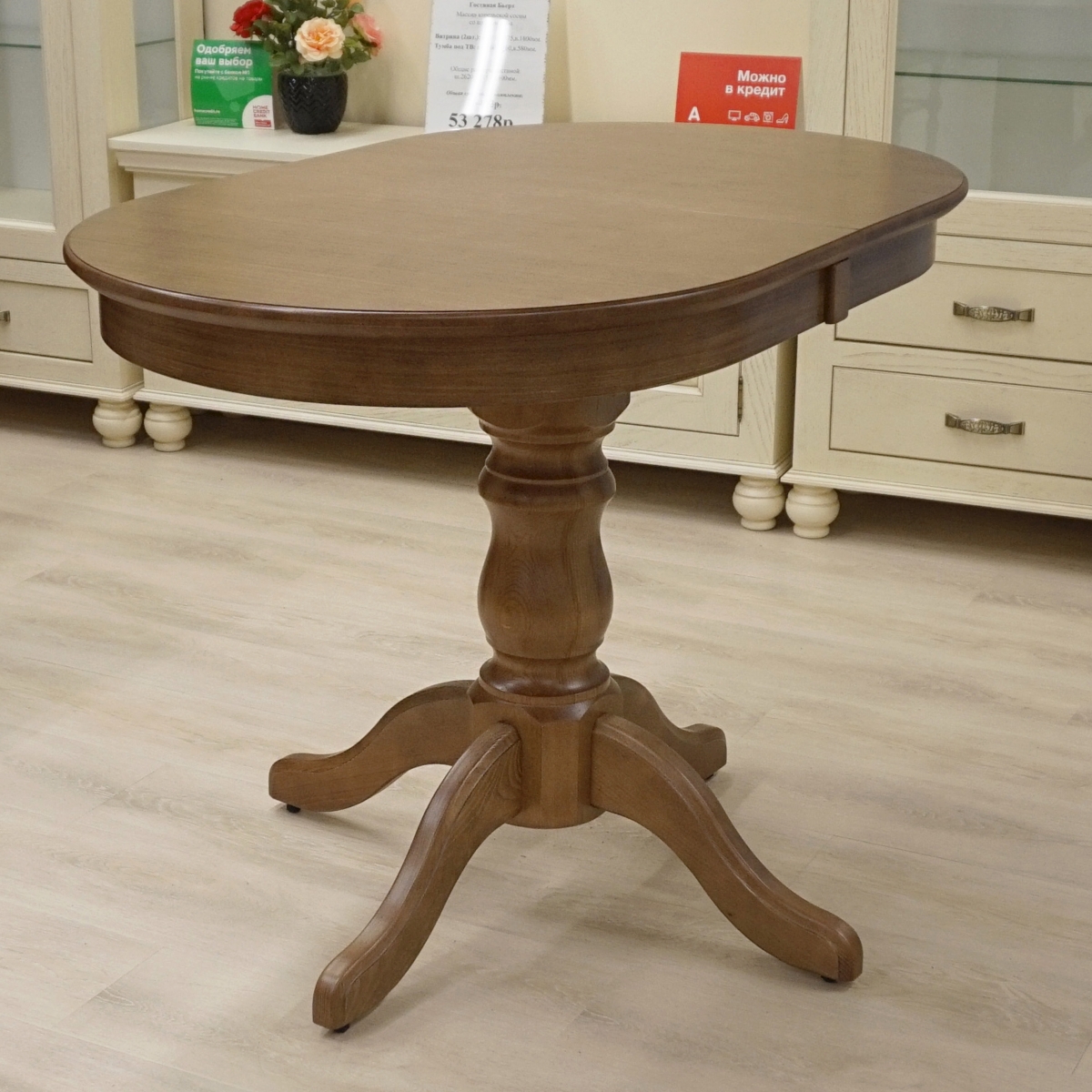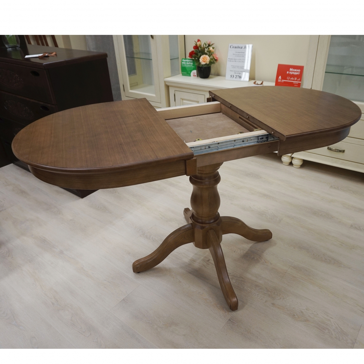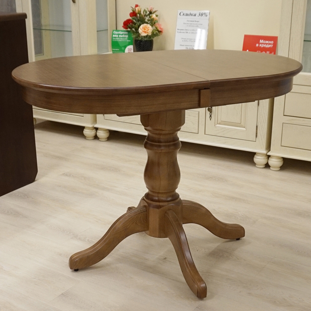Орегон Овальный Раздвижной. Размер 70х100см+ вставка 30см. Столешница МДФ со шпоном дуба, ножка массив сосны. Цвет №8 (Орех) Скидка 30%