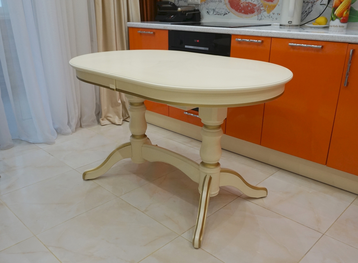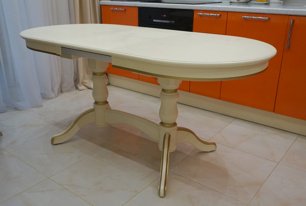 Размер стола: 80х120см. раздвижной, вставка 40см. Цвет: "Белая эмаль", патина золото.