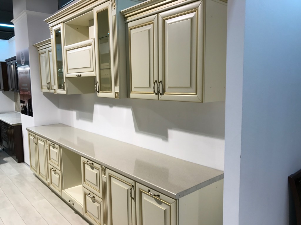 В связи со сменой экспозиции продается выставочный образец кухни "Элегия". Цвет: Слоновая кость, с золотой патиной.