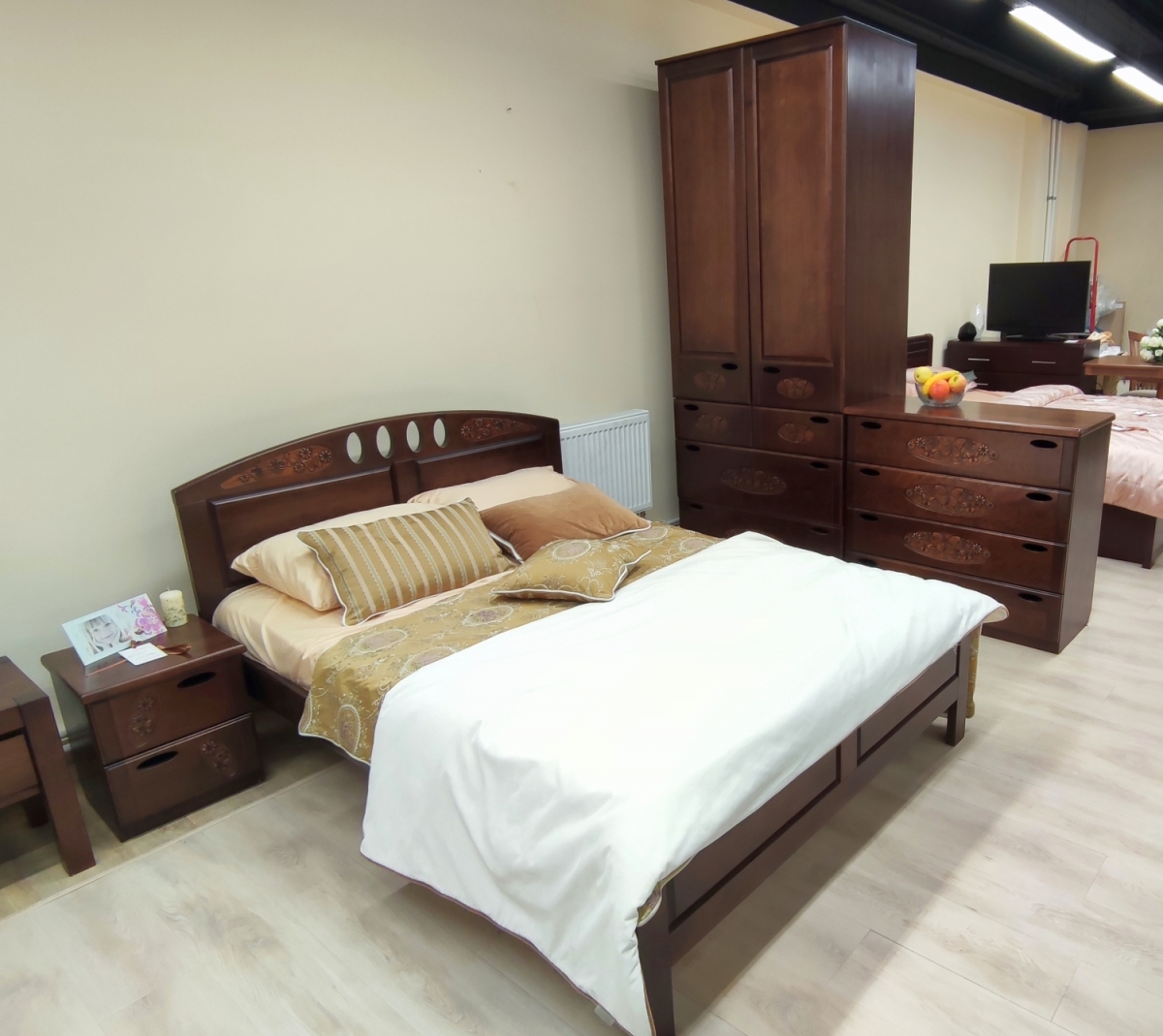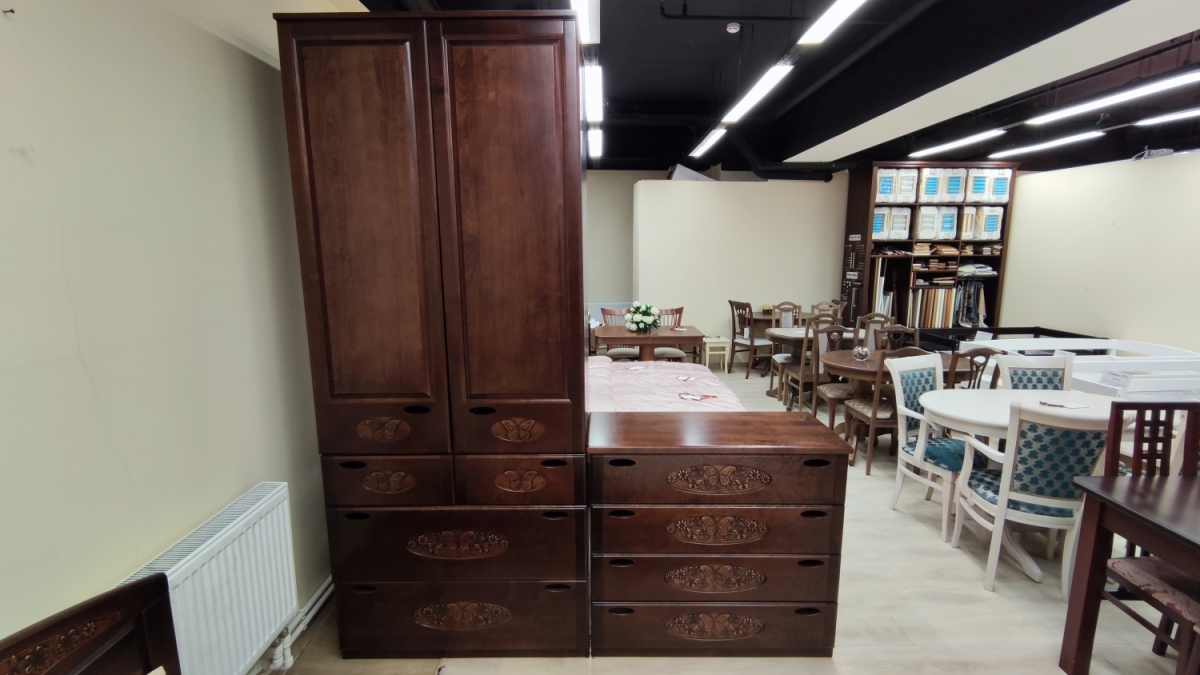 Продается выставочный комплект спальни. Стоимость указана с учетом скидки. Цвет Грецкий орех.