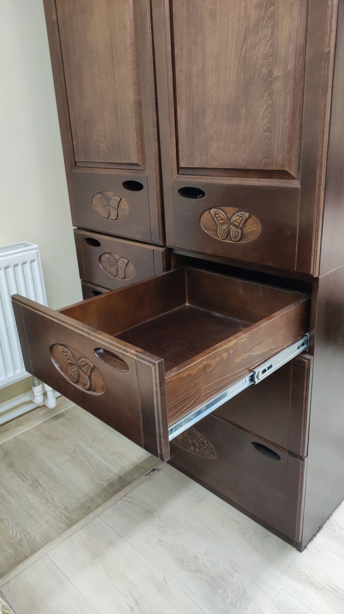 4. Шкаф, береза с резьбой, ш.100см., г.60см., в.240см. (1шт.)
