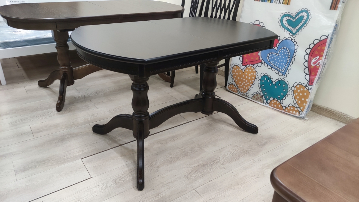 Стоимость такого нового стола под заказ, без скидки: 30 369р.: https://galateas.ru/kuhonnye-stoly/kuhonnyi-stol-versal-plyus.html