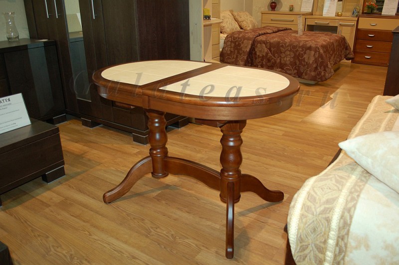 Размер стола: 70х110см. + вставка 30см., с кафелем, цвет "Грецкий орех", кафель №9, на 2-х ножках.