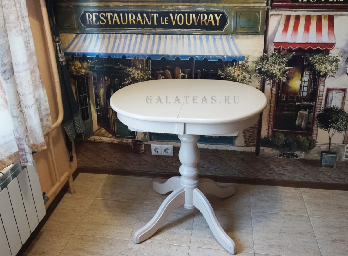 Размер стола: 60х80см.+вставка 20см., цвет: "Белый", на 1-й ножке.