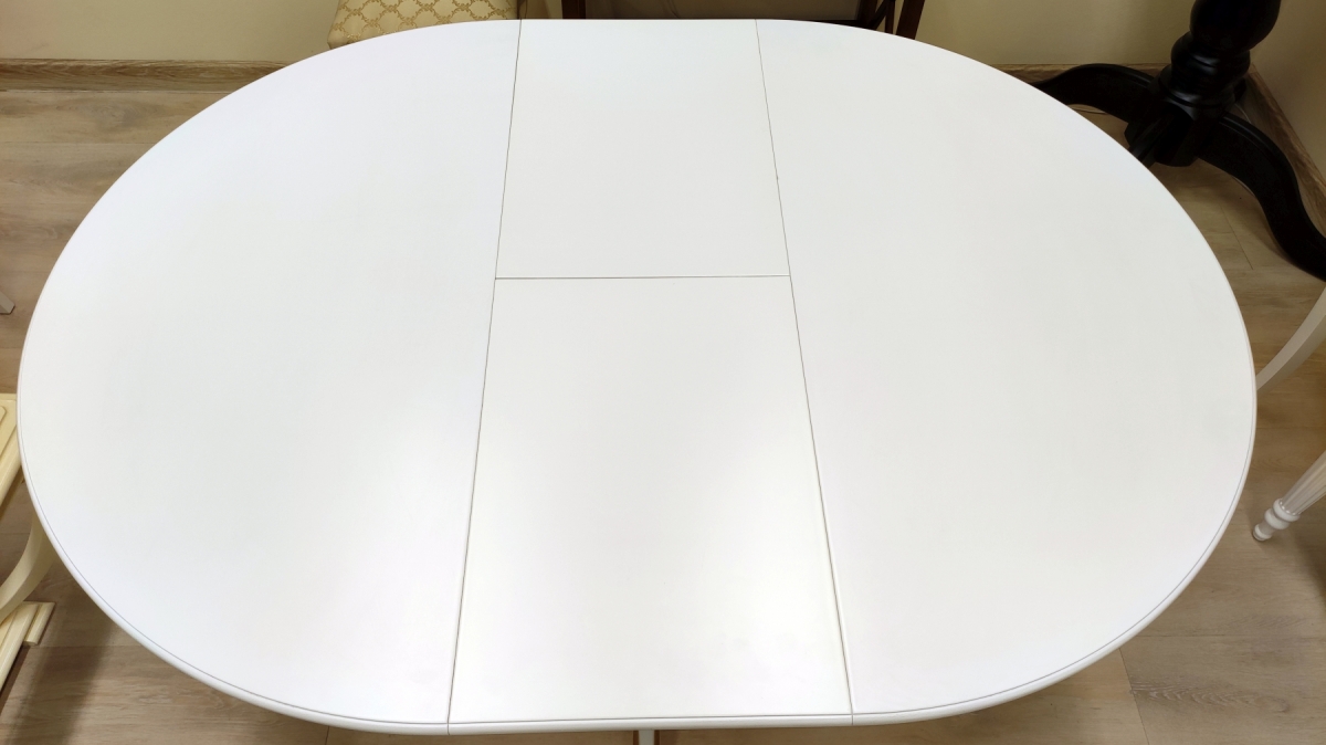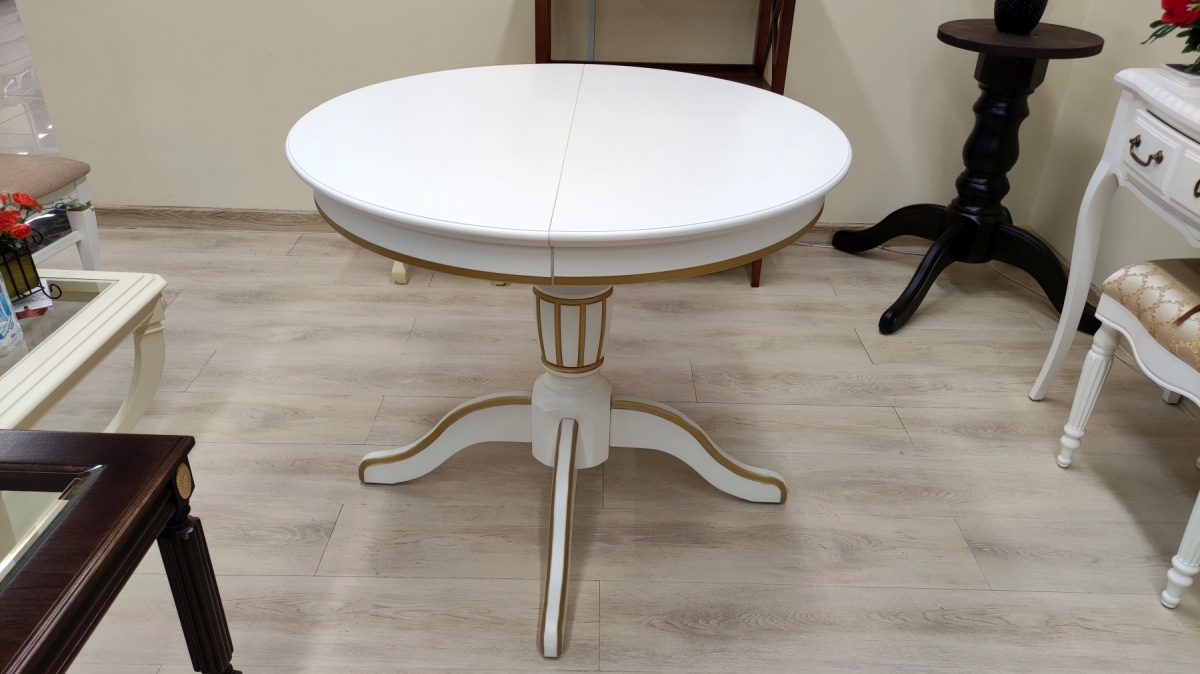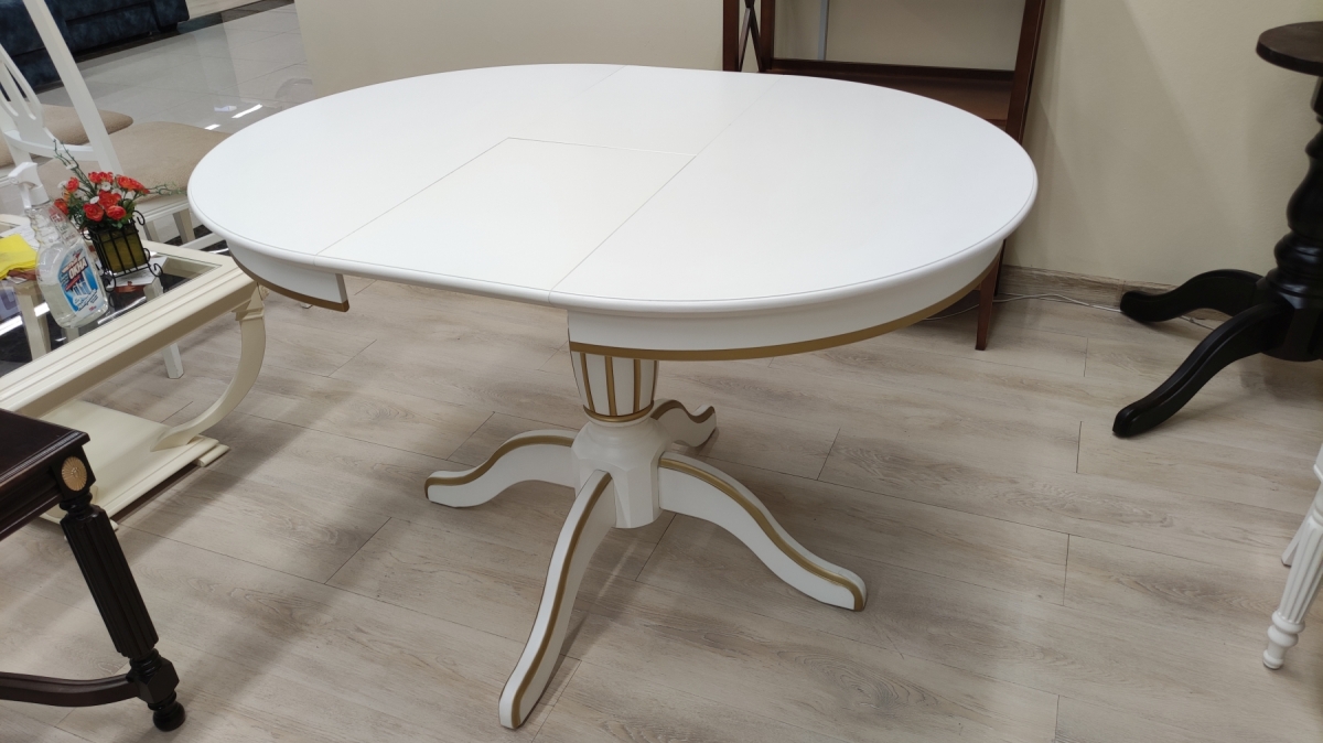 Размер стола: Д90см.+вставка 30см. Материал: ножка из березы, столешница МДФ.