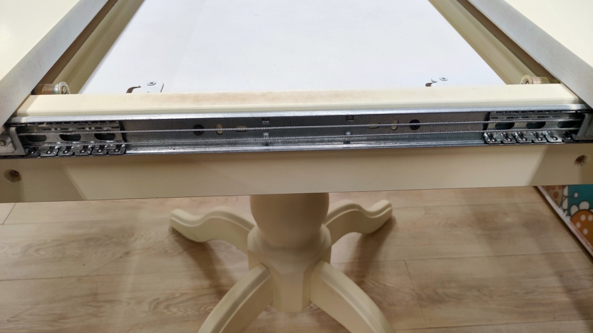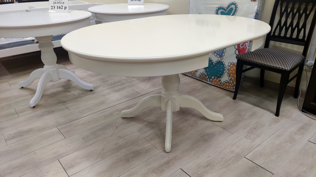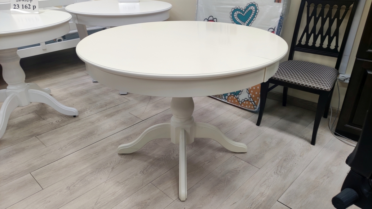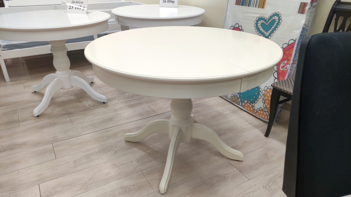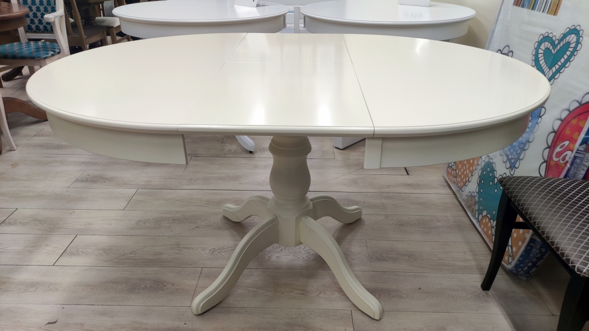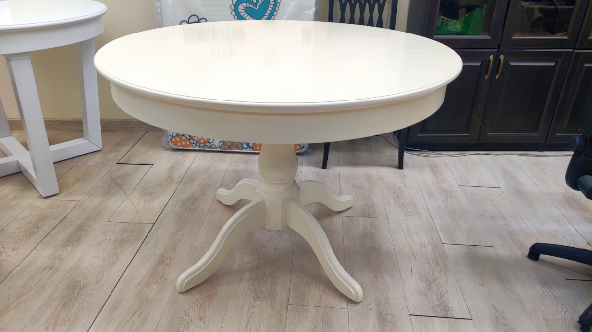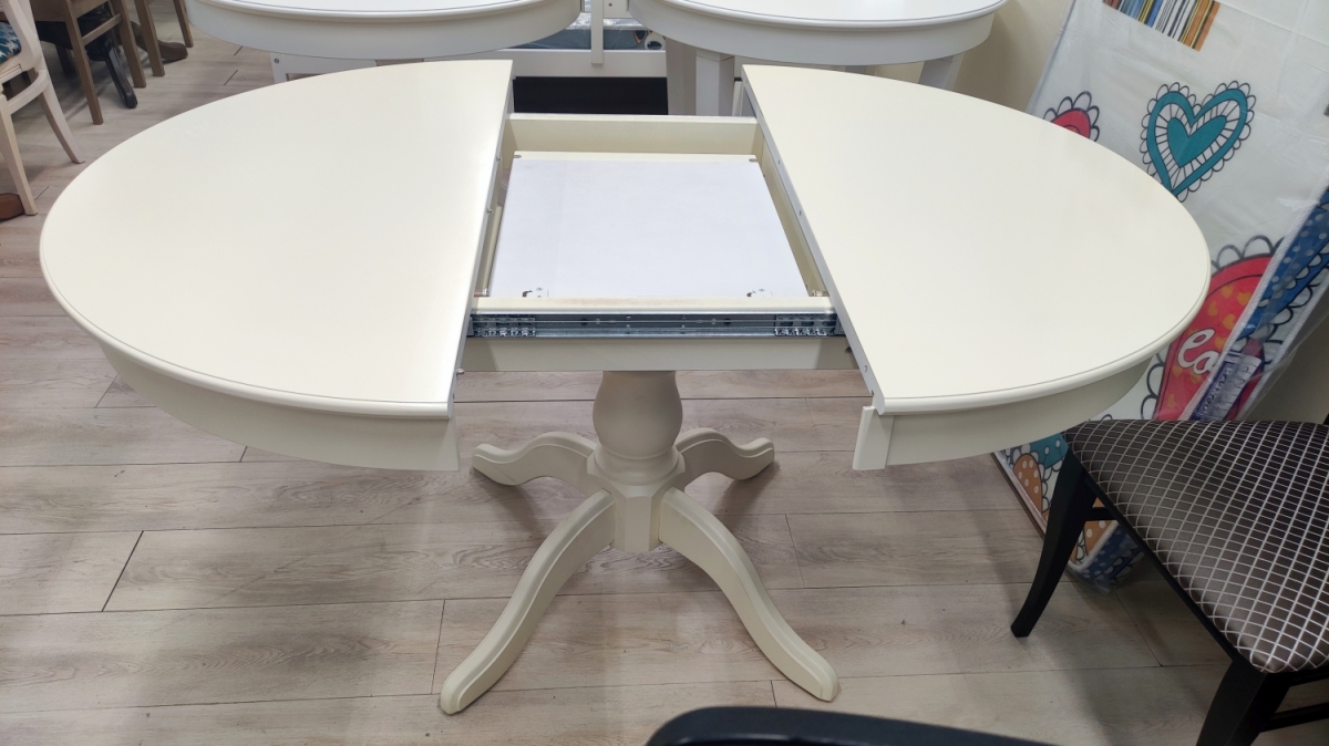 Размер стола: Д110см., раздвижной, вставка 30см. В разложенном виде размер 110х140см. Цвет: "Слоновая кость".