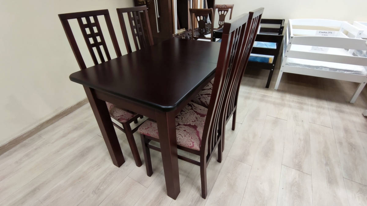 Размер стола: 70х110см., раздвижной, вставка 30см. Цвет: "Вишня". Материал: ножки из березы, столешница шпон.